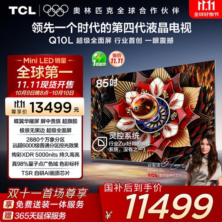 游戏体验上,它支持原生144Hz高刷和288Hz动态刷新率,能流畅运行市面上主流游戏。并且搭载了经过安桥认证的2.2.2环绕声音响,声场开阔,乐器定位准,比较适合听演唱会或者音乐类影片。价格上,目前享受国补后85英寸是11499元。如果你主要用来看常规影视内容,预算也比较充足,那这台TCL Q10L还是值得考虑。